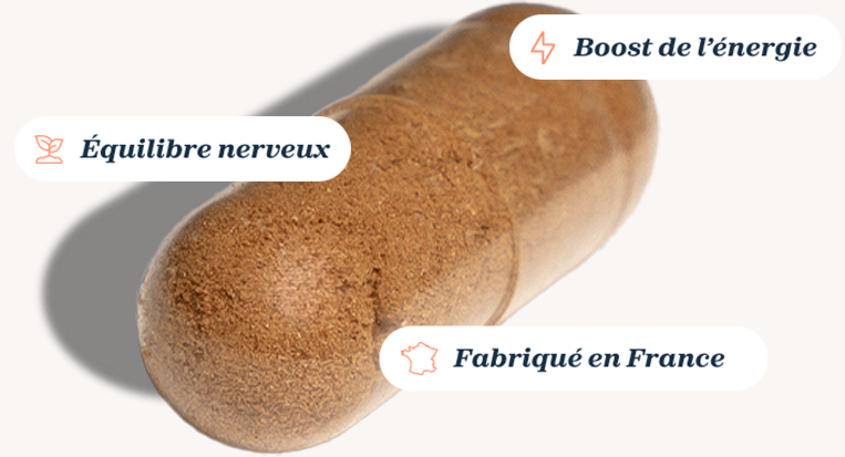 - Des plantes : spiruline pour son apport en nutriments et ginseng pour un effet tonifiant.